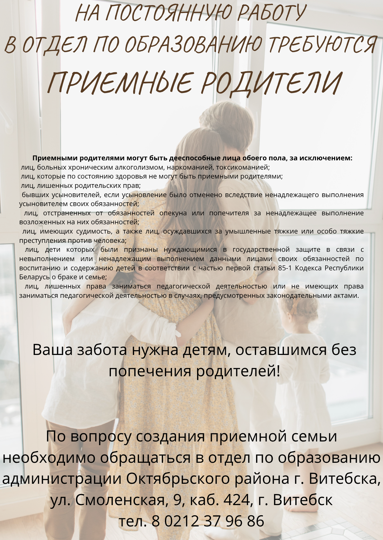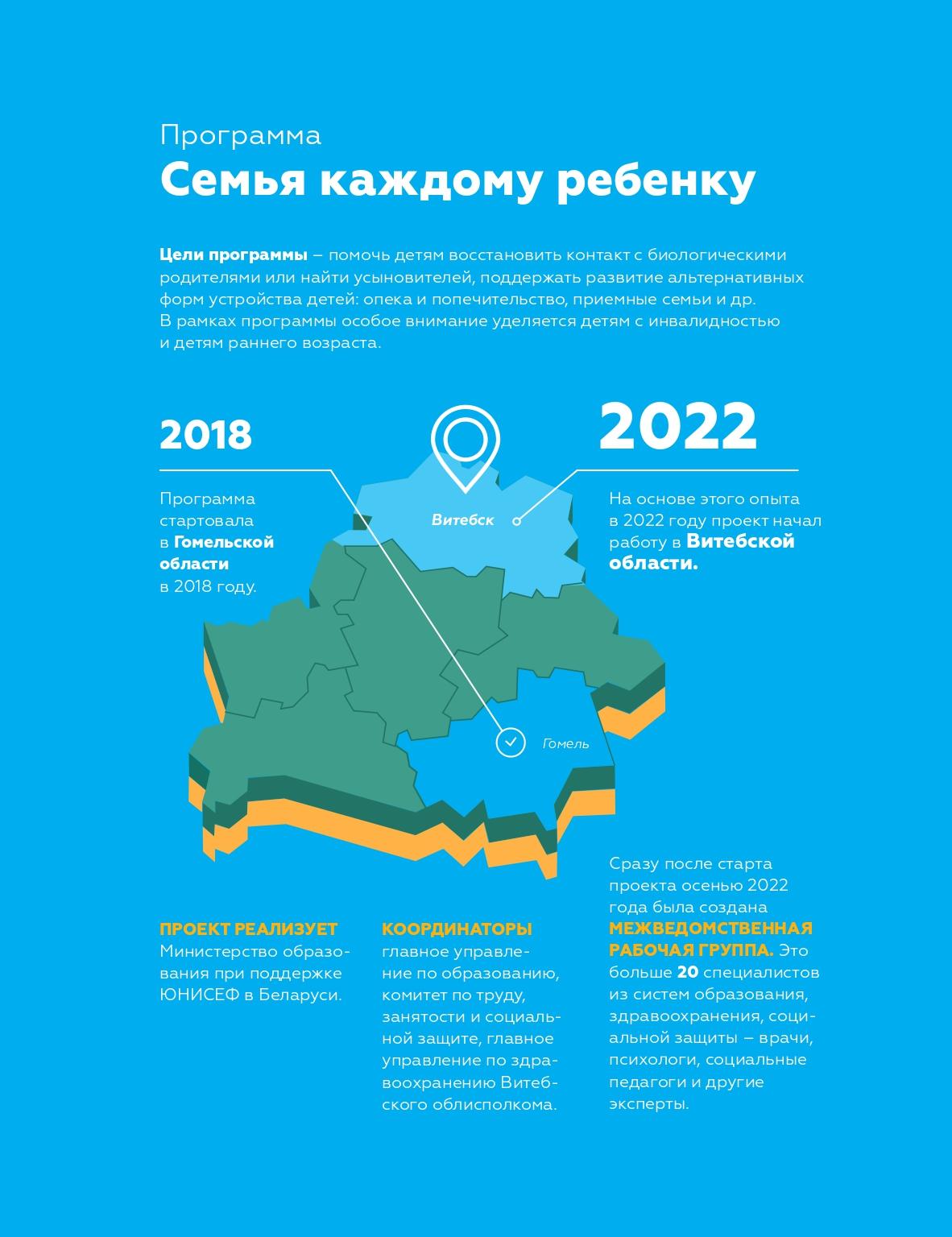 В НЕБОЛЬШОЙ БРОШЮРЕ «СЕМЬЯ КАЖДОМУ РЕБЕНКУ. ПОЛЕЗНАЯ ИНФОРМАЦИЯ ДЛЯ РОДИТЕЛЕЙ И ОПЕКУНОВ» СОБРАНА БОЛЕЕ ПОДРОБНАЯ ИНФОРМАЦИЯ  О ПРОЕКТЕ И О ТОЙ ПОМОЩИ И ПОДДЕРЖКЕ, КОТОРОЙ МОГУТ ВОСПОЛЬЗОВАТЬСЯ РОДИТЕЛИ И ОПЕКУНЫ В ВИТЕБСКОЙ ОБЛАСТИ.