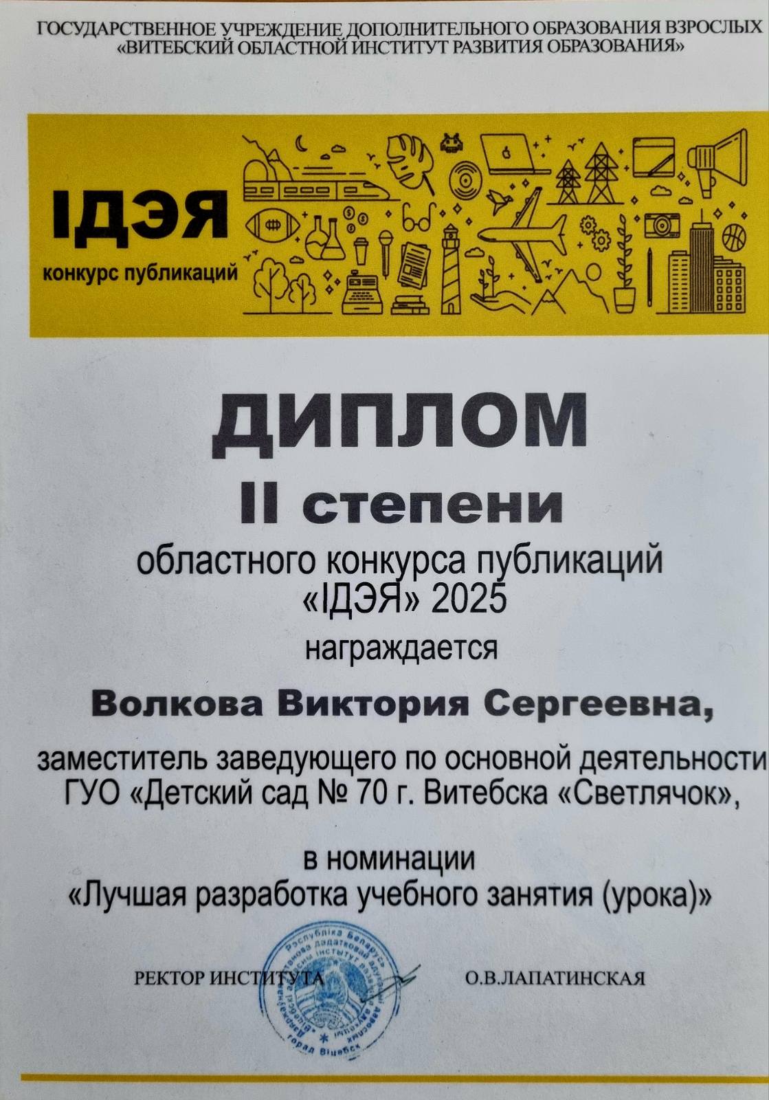 ПОЗДРАВЛЯЕМ! ДИПЛОМ II СТЕПЕНИ ОБЛАСТНОГО КОНКУРСА ПУБЛИКАЦИЙ «IДЭЯ» 2025 09.01.2026 ← Вернуться к списку новостей Поделиться новостью: